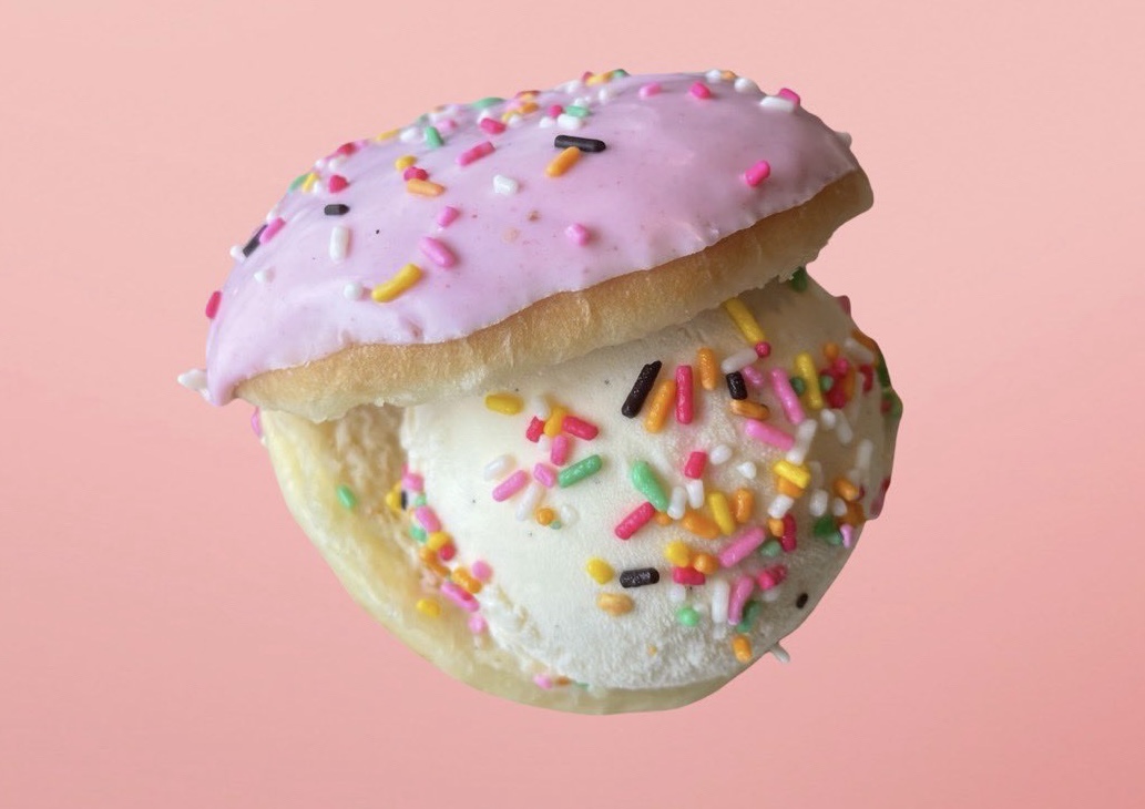 「アイスクリームドーナツ」には、ふわふわ生地のドーナツと相性のいい、なめらかで口どけの良いアイスをサンド。