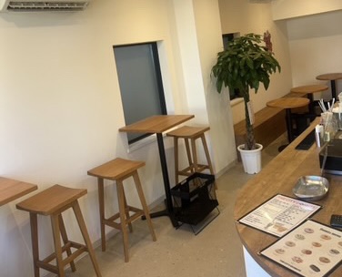 「THE CITY DONUTS 北九州折尾店」は、テイクアウトだけでなく、イートインも可能。木目調のテーブル席やカウンター席があり暖かい雰囲気の内装で、ゆっくりくつろげます。