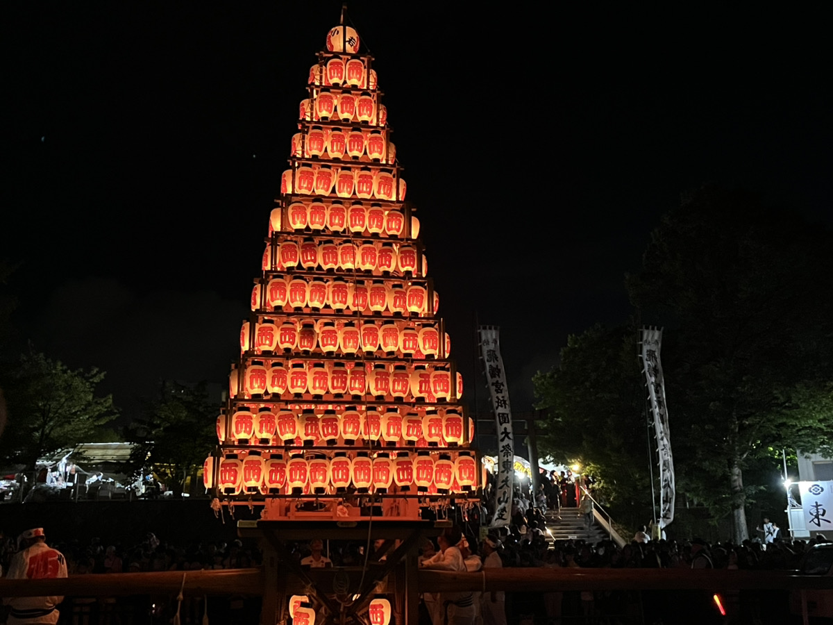 220年以上の歴史を誇り、ユネスコ無形文化遺産にも登録されている戸畑祇園大山笠行事に関する解説と、夜空に映える光のピラミッドや幟山笠などの写真を楽しむことができます。