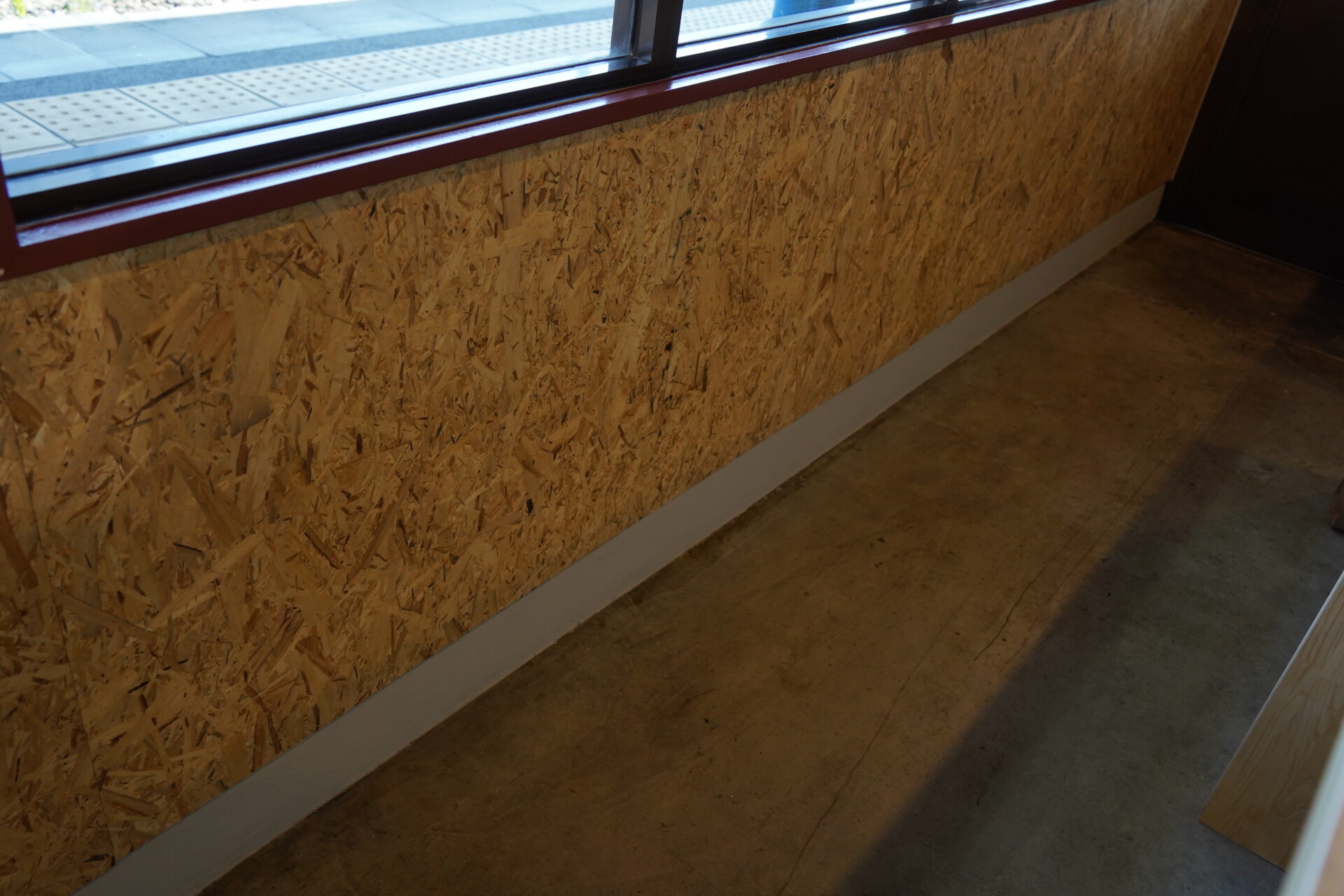 厨房は新品の床ですが、来店者の足元には昔のままの床を残し、誰かが来た足跡が風情あります。