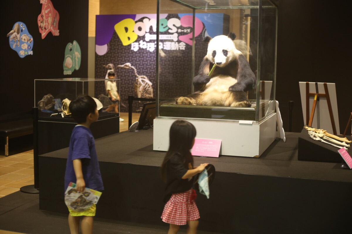 1972年に日本へ初めてやってきたパンダ「カンカン」と「ランラン」は、空前のパンダブームを巻き起こしました。そのうちの1体「カンカン」の本物の剥製が入口を入ってすぐに展示されています。この展示は、来場者に「Bones2」の世界観に没入してもらうためのアイキャッチ的な存在だといいます。
