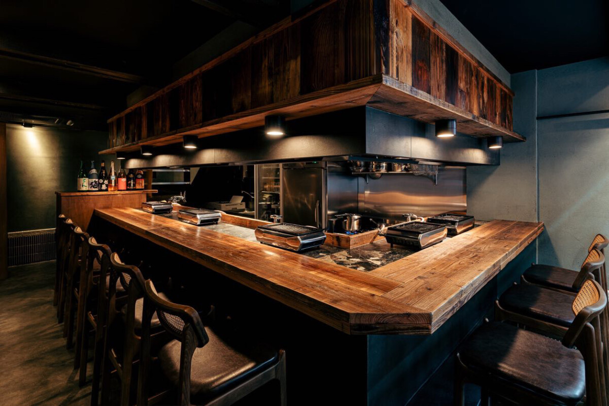 店内は、木目調のカウンターや黒で統一された落ち着いた雰囲気です。