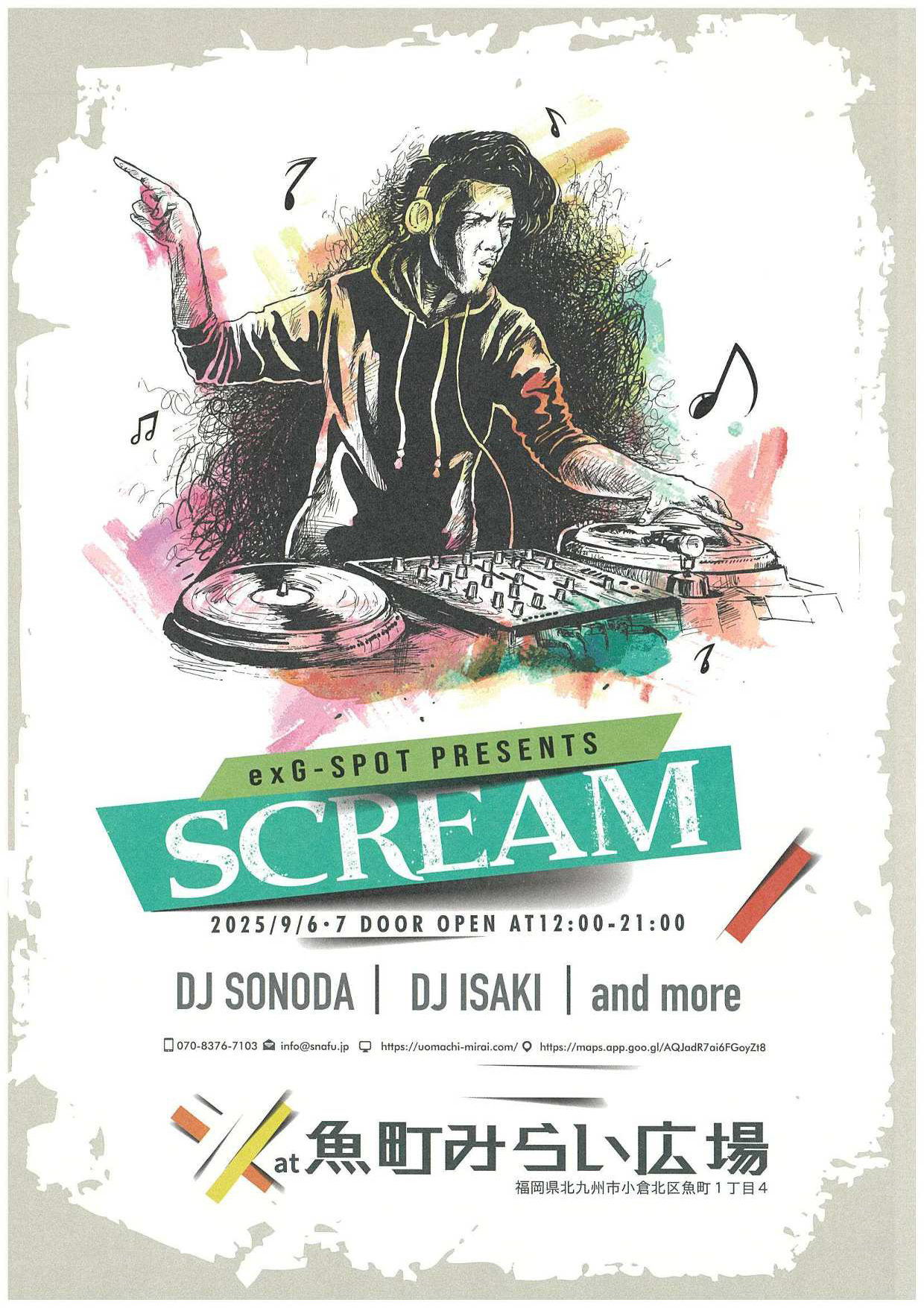 魚町みらい広場で9月6日と7日、オールジャンルのDJイベント「SCREAM code01」が開催されます。