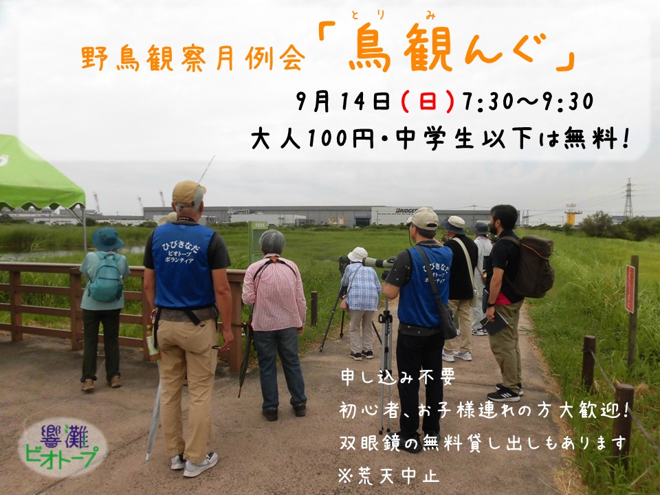 野鳥観察月例会「鳥観んぐ」を開催します/響灘ビオトープ