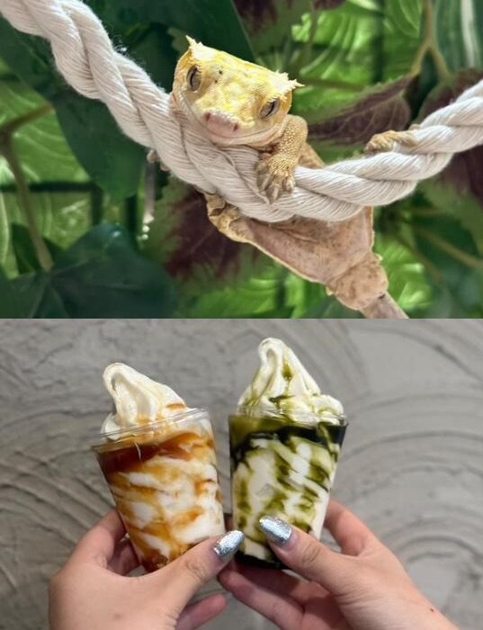 クレステッドゲッコーは、ニューカレドニア原産の樹上性のヤモリで、目の上から頭部に並ぶトゲ状の突起「クレスト」と、まぶたがないのに長い舌で目を拭う姿が最大の特徴です。夜行性で雑食性、穏やかな性格のため、ペットとして飼育しやすく、寿命は約15~20年と長いです。ぜひ遊びに来てください!