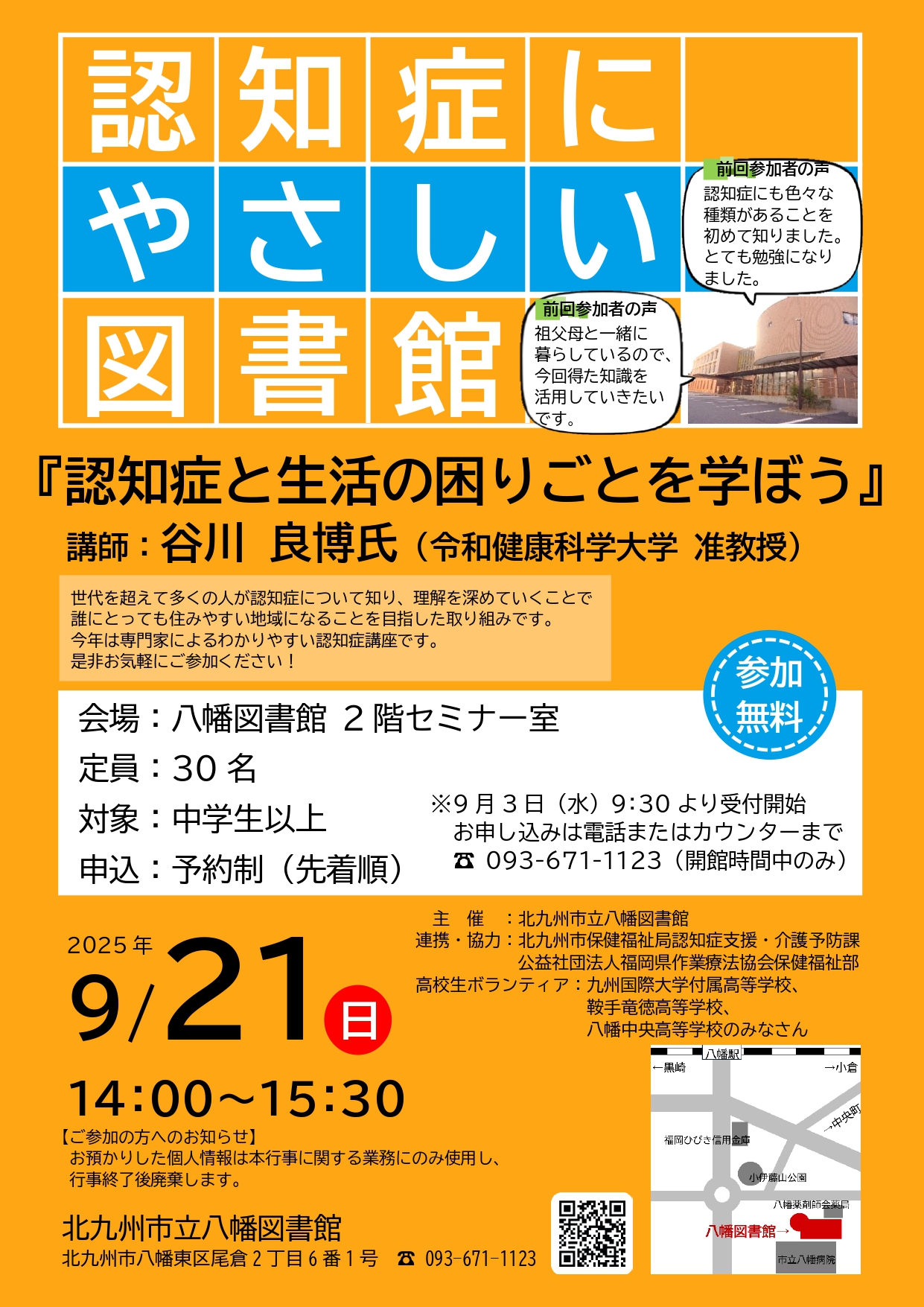 9月21日(日)認知症にやさしい図書館「認知症と生活の困りごとを学ぼう」/北九州市立八幡図書館