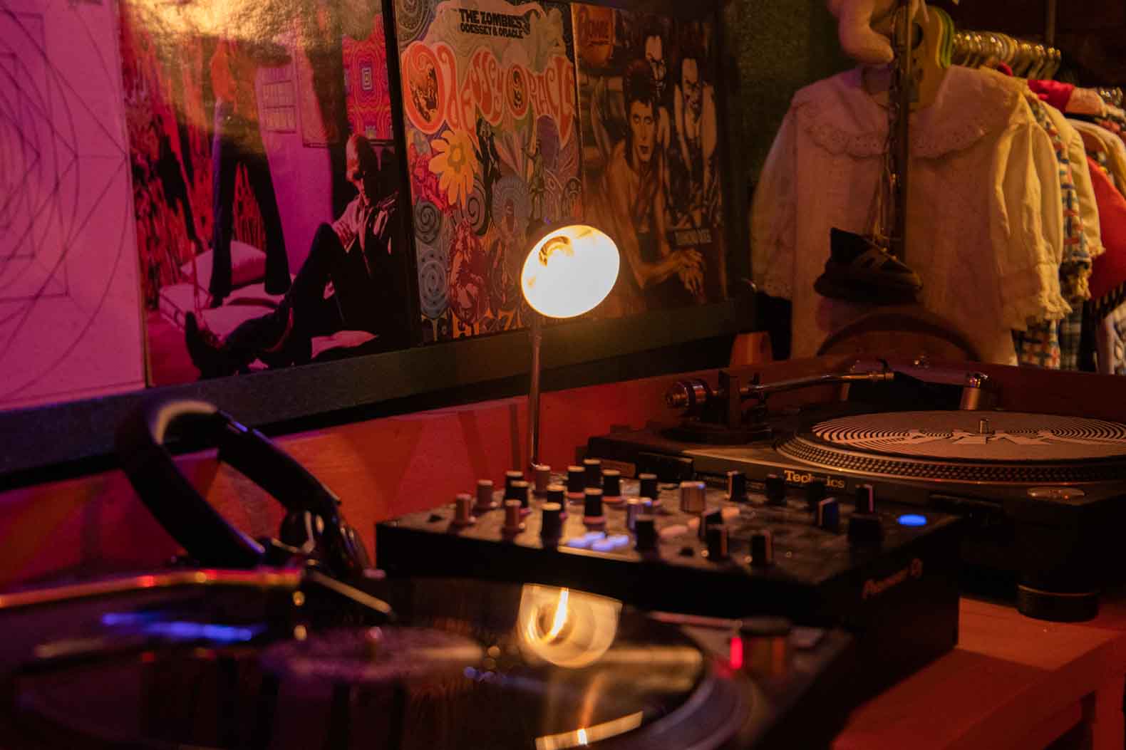 1960年代~1970年代のアイテムが揃う同店。店内の一角にはDJブースもあり、「古着だけではなく、音楽も合わせてその国や時代を感じられるような店づくりを目指しています」と話してくれました。