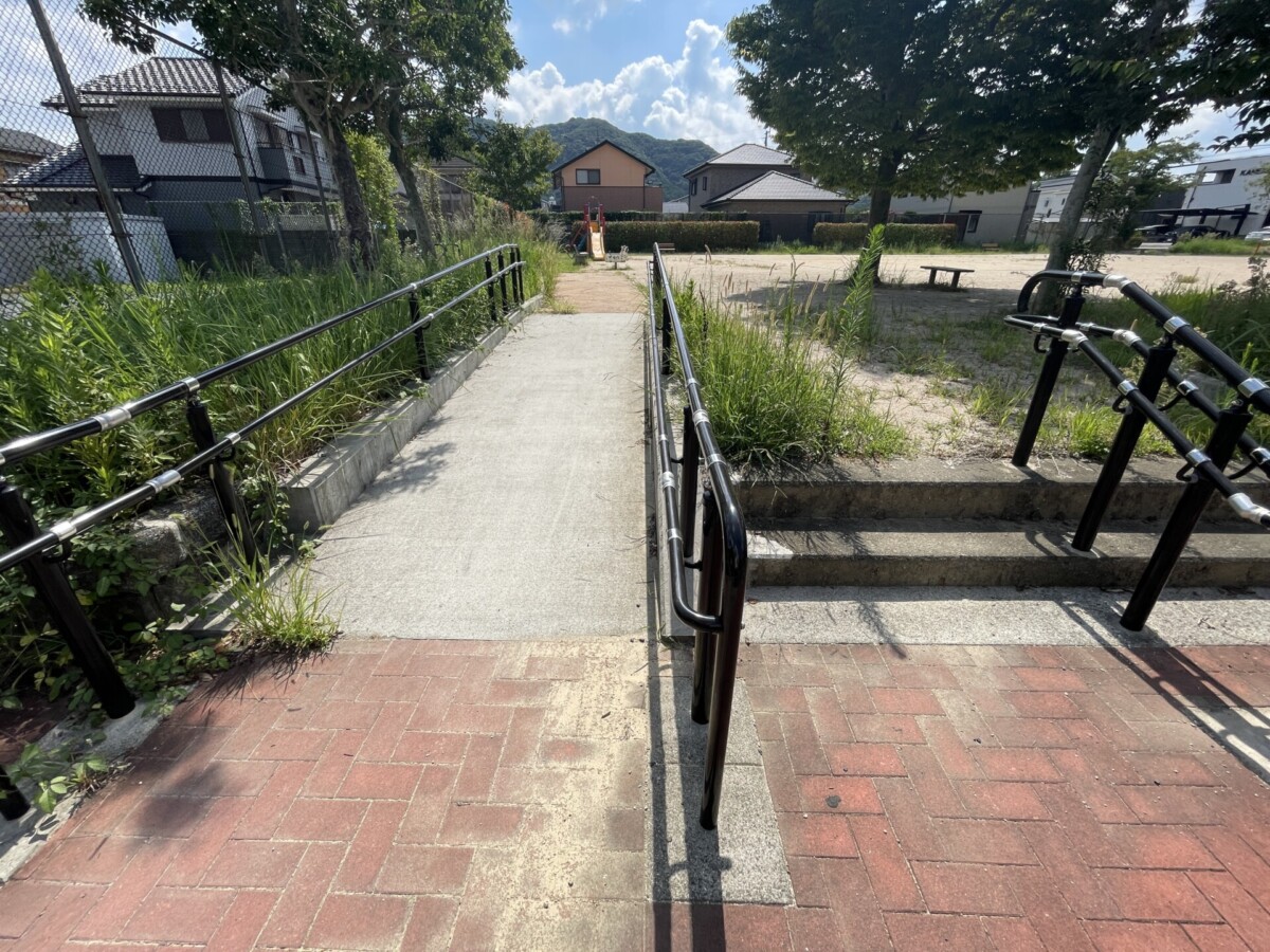 スロープや手すりの付いた入口もあり、ベビーカーでも利用しやすくなっています。