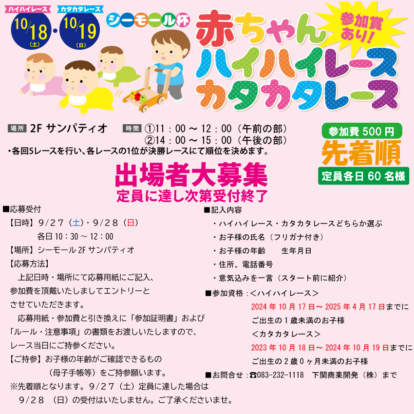 10月18日(土)・19日(日)に開催される<第8回ハイハイレース・第7回カタカタレース シーモール杯>の出場者を大募集!
