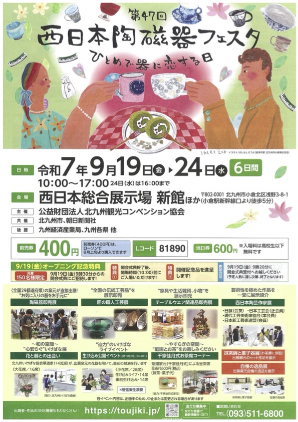 詳細は、西日本陶磁器フェスタのホームページで確認できます。