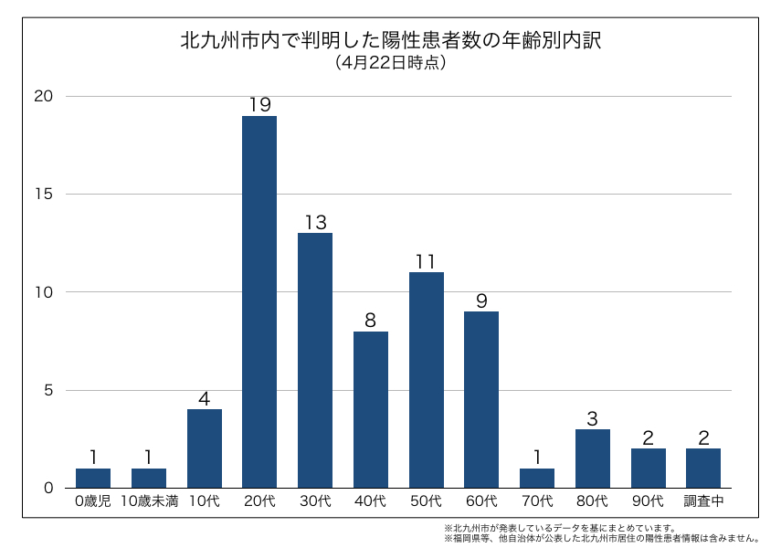【新型コロナ/北九州】4月22日時点の感染者推移 5日ぶりに陽性判明