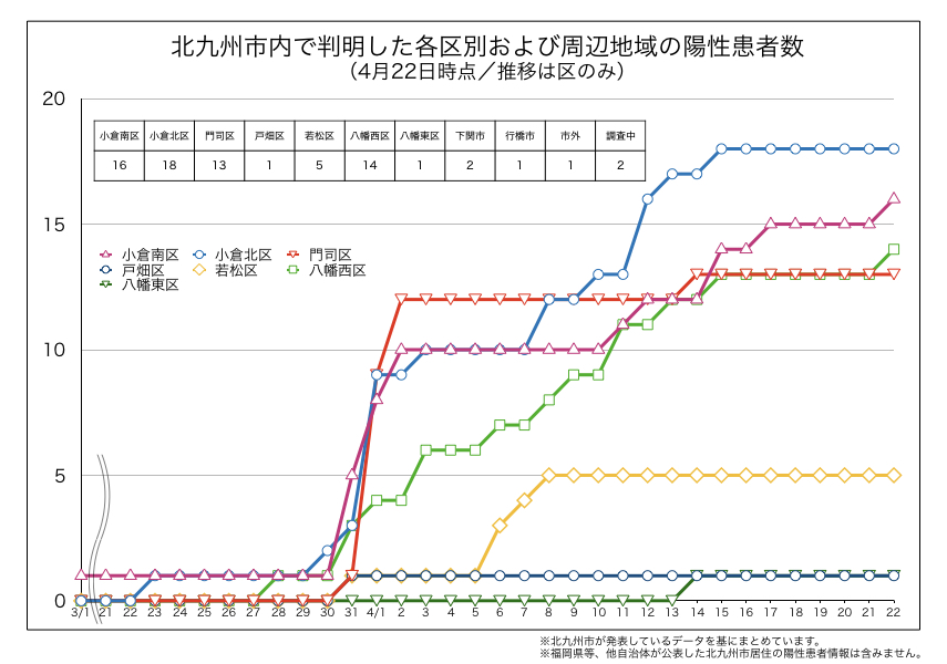 【新型コロナ/北九州】4月22日時点の感染者推移 5日ぶりに陽性判明
