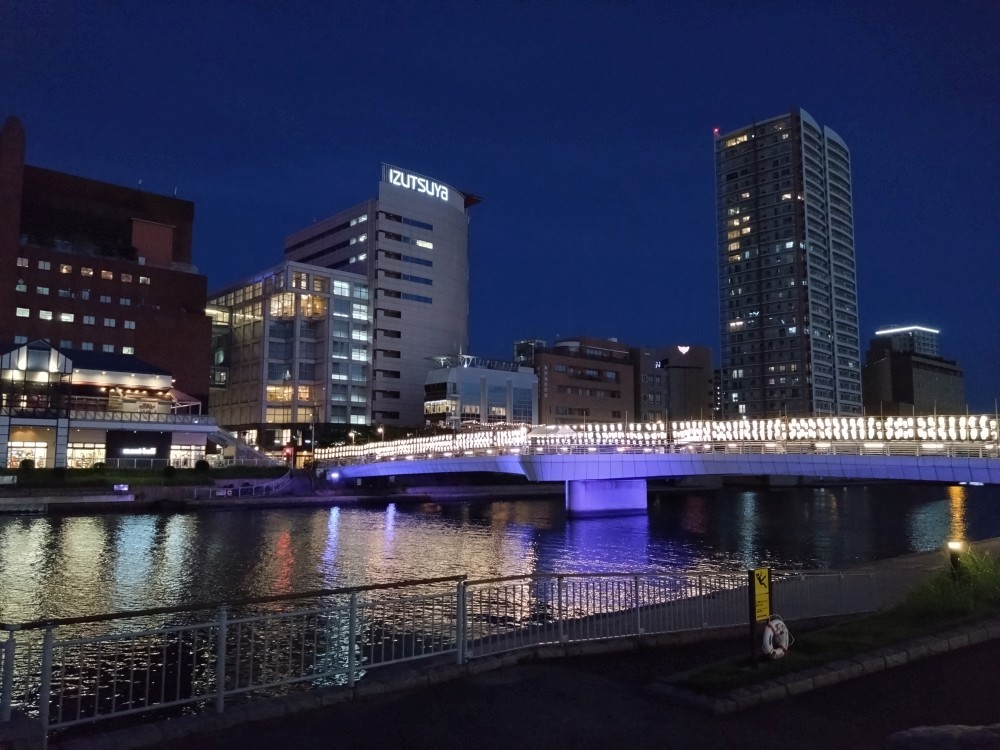 小倉井筒屋から北九州市庁舎付近へ続く「鷗外橋」や複合商業施設・リバーウォーク北九州から勝山公園まで続く道、そして勝山公園内に提灯がたくさん連なっていました。