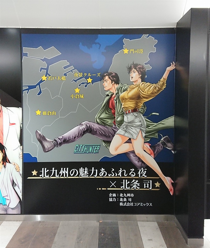 小倉駅1階東側公共連絡通路に、北九州市出身の漫画家である北条司さんの作品と「日本新三大夜景都市」である北九州市の夜景を組み合わせた新たなフォトスポットが登場しています。