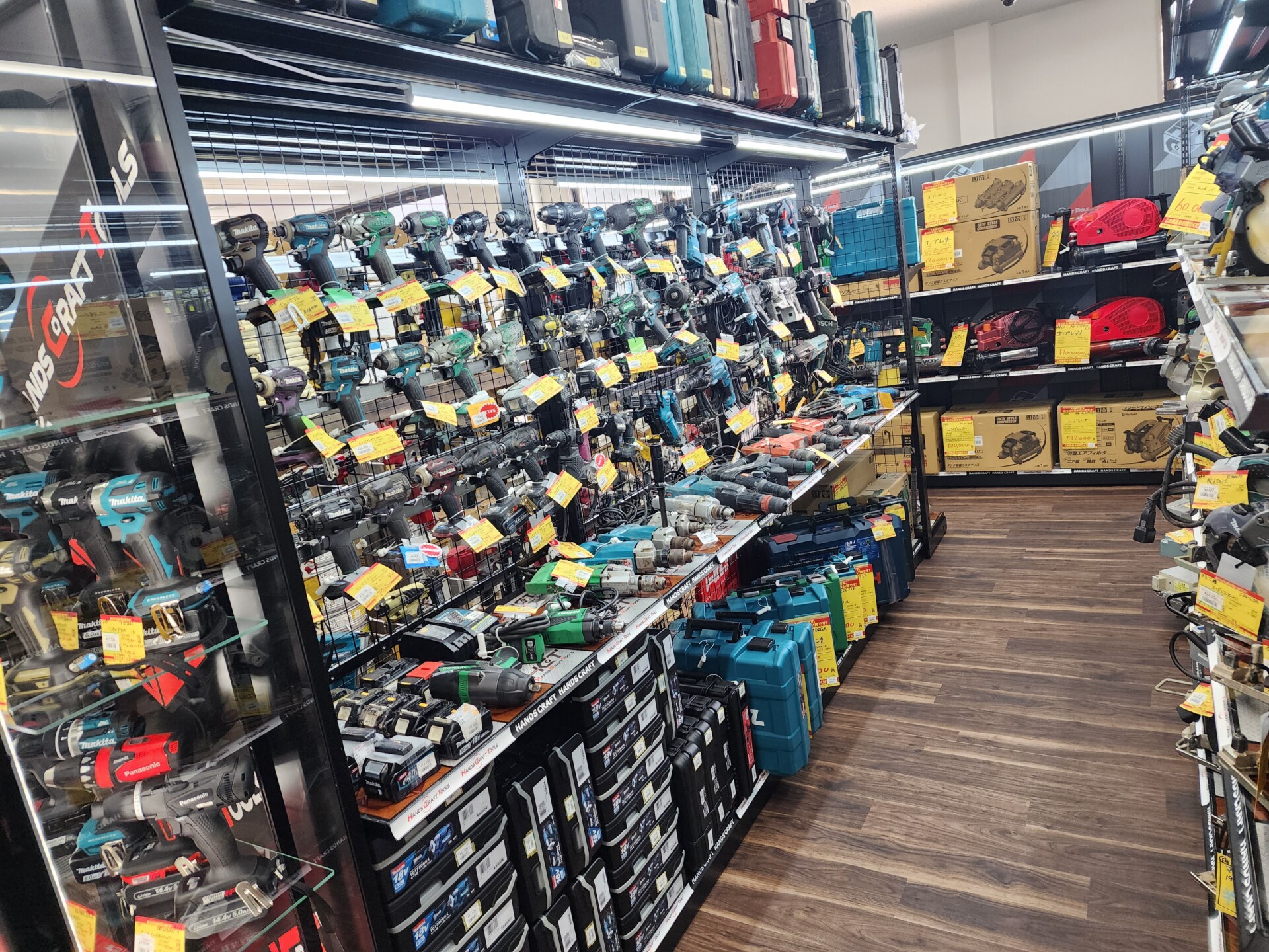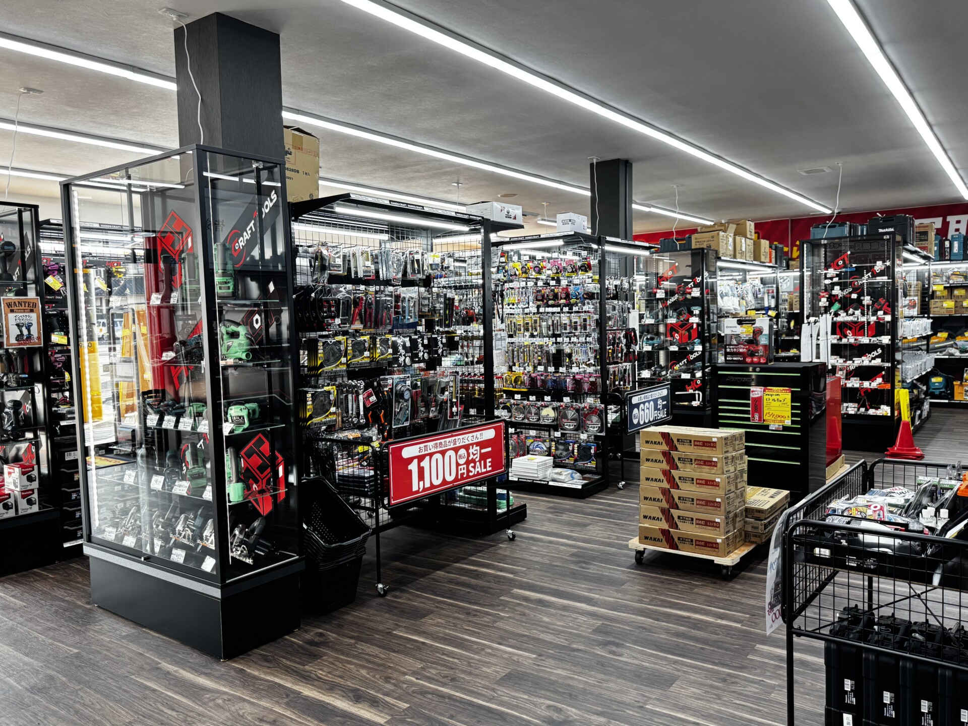 店内にはプロ仕様からDIY初心者向けまで多種多様な工具が揃っています。