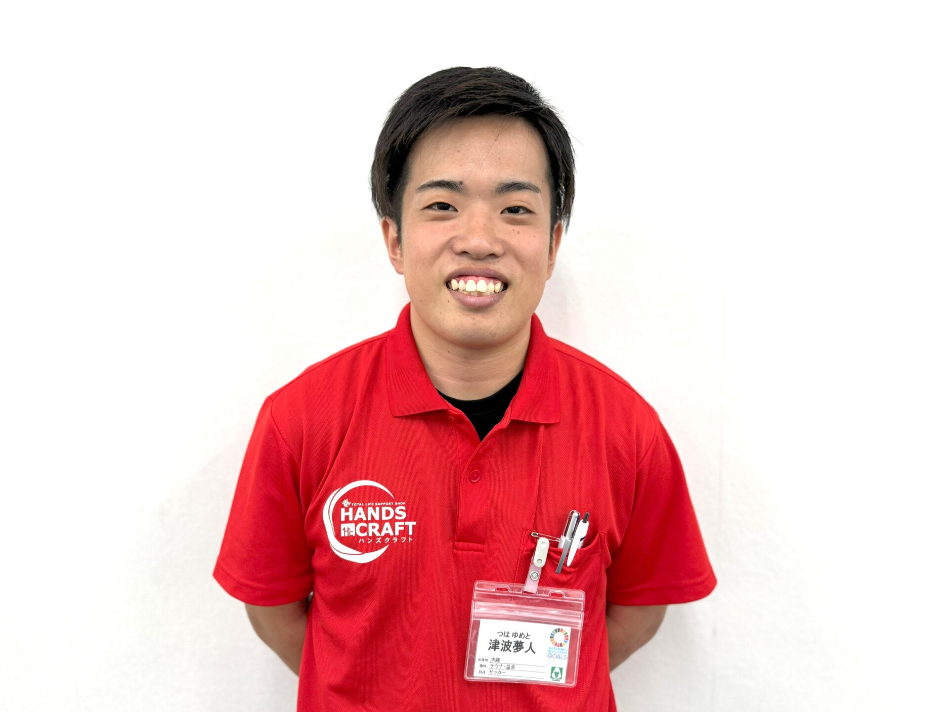 2025年4月に新卒でライフクリエイトへ入社し、現在ハンズクラフト小倉南店で活躍している津波夢人さん。沖縄の大学で学んだことやゼミ活動を通して、リユース事業に魅力を感じ入社を決意したそうです。