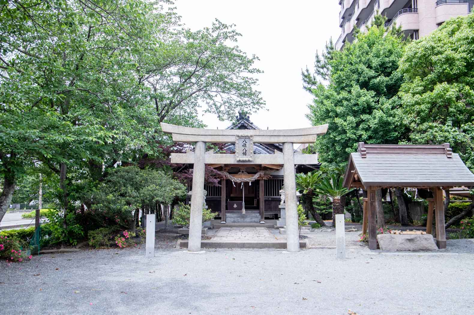 集会所のような建物の隣には立派な鳥居があり、「八旗八幡」と刻まれています。品陀和気命(ホムダワケノミコト)が祀られているそうです。