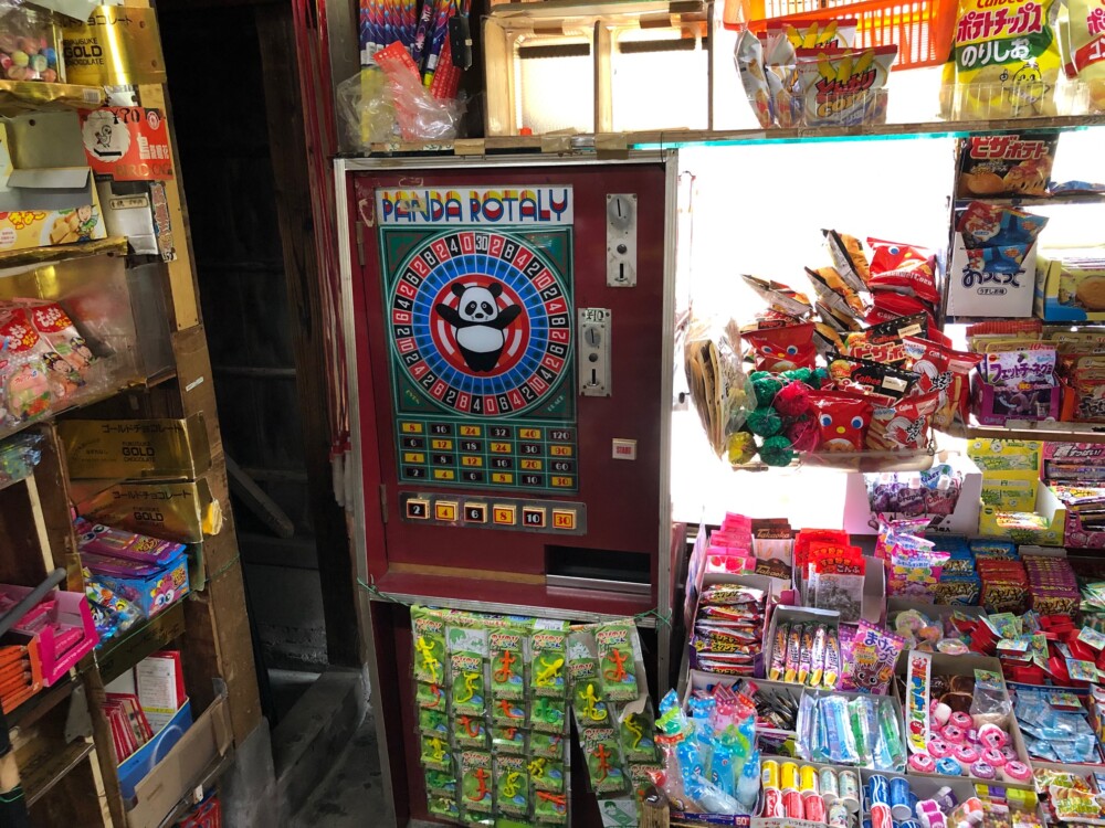 店内に設置されている昔懐かしいコインゲーム機「PANDA ROTALY」は今も現役ですが、当たった時にもらえるメダルが出てくる部分が故障しているとのこと。ちなみに、当たった時は菊地さんが手動でメダルを出してくれるそうです。