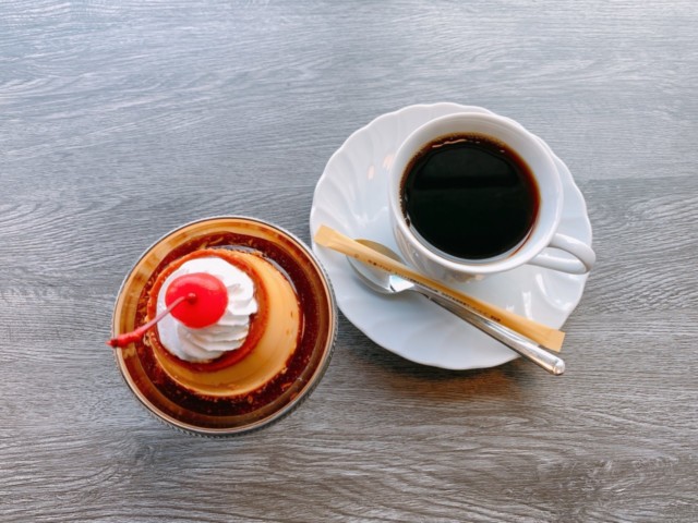 ミルクホールセットを注文すれば、プリン+お好きな珈琲を1,000円で楽しめます。