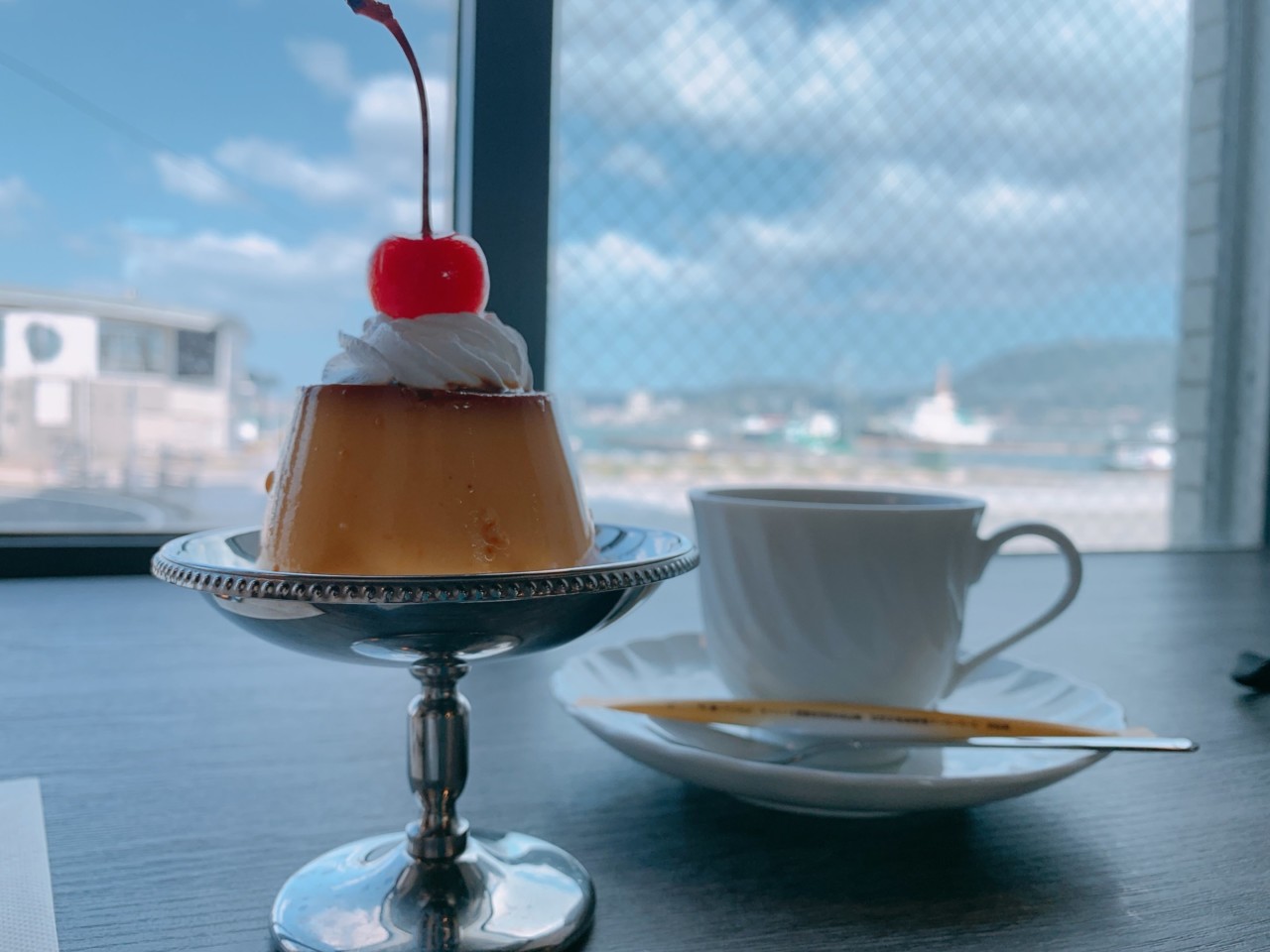 カラメルソースは少し大人な味ですが、プリンの甘さとマッチしてとてもおいしいです!そしてバックには海。ロケーションもばっちり!
