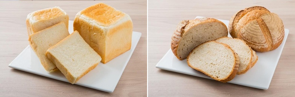 「ブルマンブレッド(写真左)」「バゲット」「カンパーニュ(写真右)」の3種類があり、天然酵母ならではのしっとりとした優しい食感が特長。素材の味がしっかり楽しめるシンプルな味わいで、いろいろな料理との相性もバッチリ。食事パンとして重宝すること間違いなしです。