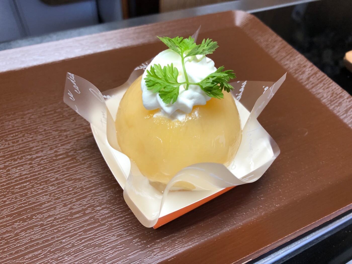 これまでホテルやレストランでパティシエを務めた店主の作る「シフォンケーキ」や「ロールケーキ」が好評ですが、今の時季は旬の桃を丸ごと1個使用し、中にクリームチーズを入れた「まるごと桃ケーキ」も人気です。