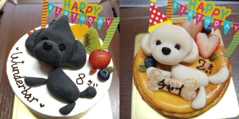 中でも注目は、鶏卵・おからパウダー・コーンスターチに、カボチャやバナナなどを混ぜて焼いたスポンジ生地とヨーグルトで作られている犬用バースデーケーキ「わんデコ」です。無添加の食材が使われているので、人も犬も食べることができます。