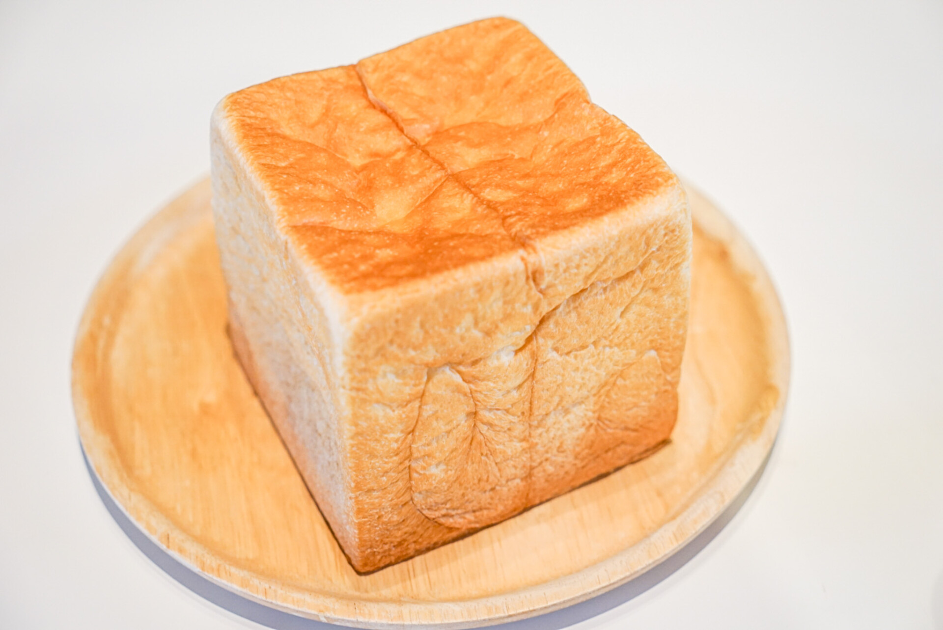 高級食パンは、「プレーン」(900円)と「リッチミルク」(写真、1000円)の2種類。
