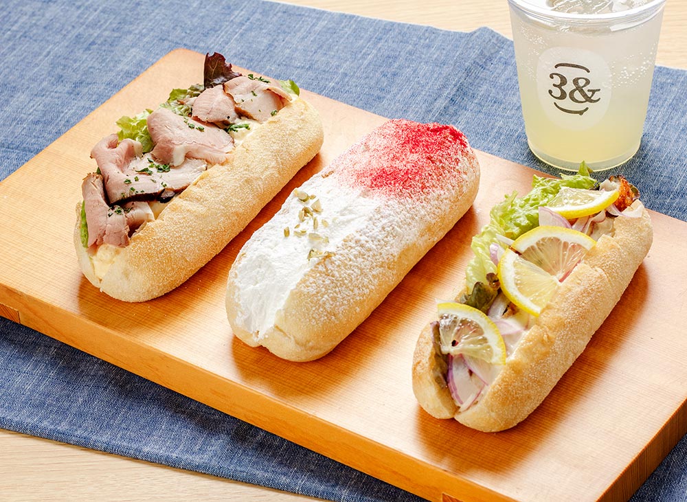 片手でパクっと食べられるサイズで、「プルドポークバーベキュー」「たまごサラダローストポーク」「博多サバレモン」の定番メニューを用意。発酵ジャムを使った「発酵ジャムクリーム」や発酵バターを使った「あんバタークリーム」、直営あかね農場の“つまんでご卵”を使った「フレンチトーストあんクリーム」など、デザート系のメニューも揃います。