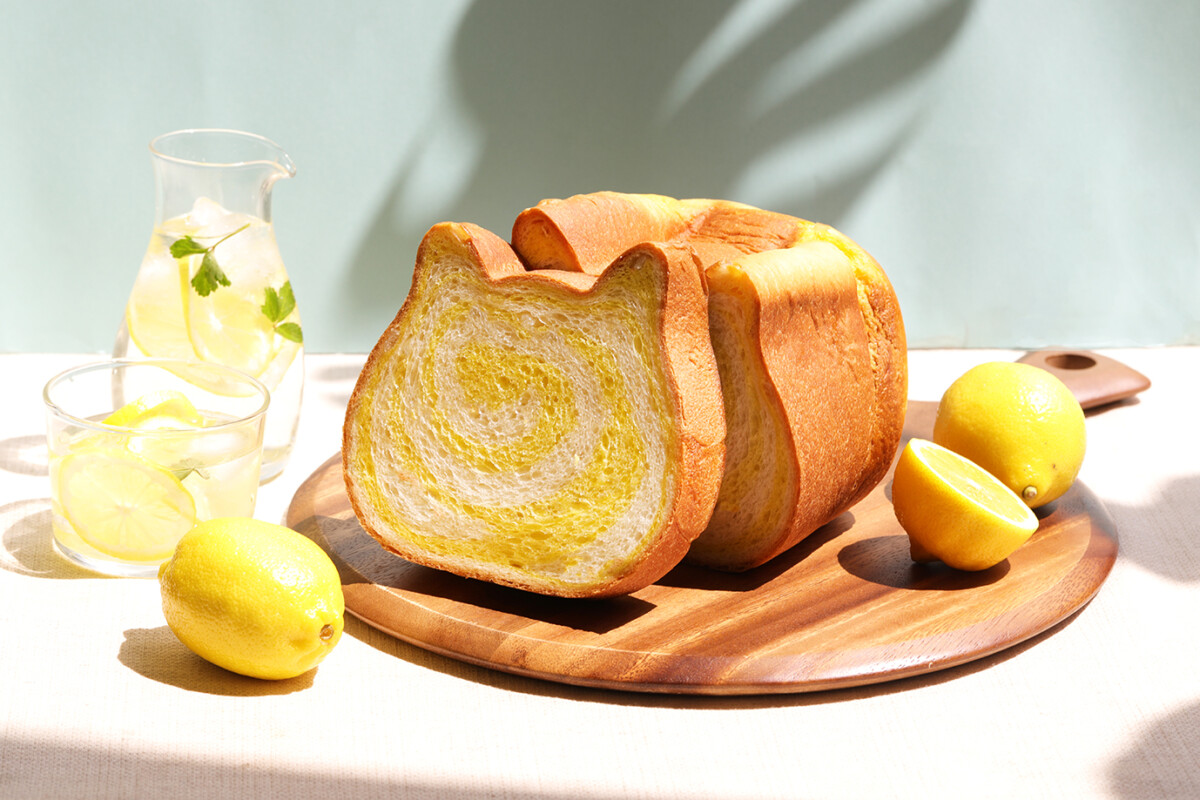レモン風味の生地にレモンピールを散らし、プレーン生地と合わせてぐるぐると焼き上げられた、夏らしい“はちみつれもん”フレーバー。ねこねこ食パン本来のミルキーな味わいにレモンの風味が合わさり、さわやかな香りとまろやかな甘みを楽しめる一品です。