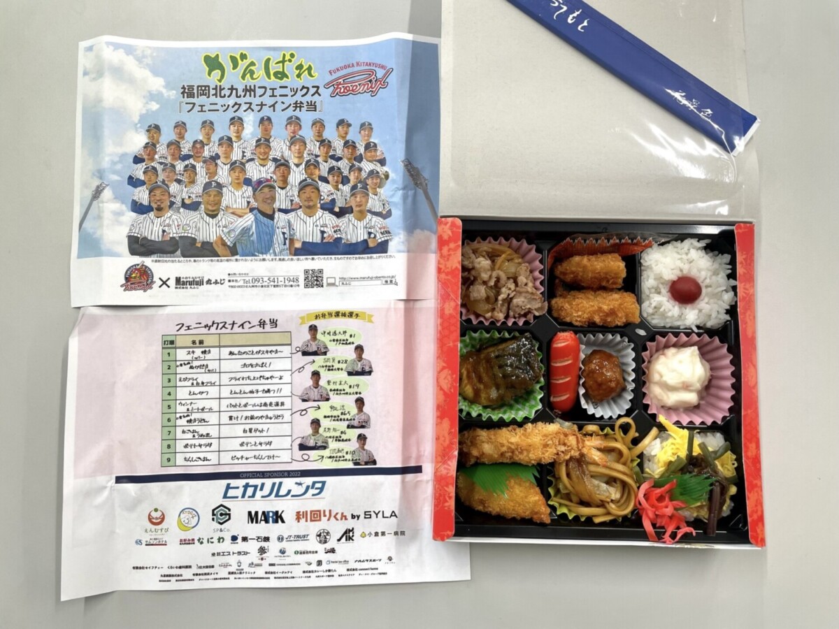 北九州市を本拠地とするプロ野球独立リーグ・ヤマエ久野九州アジアリーグの「福岡北九州フェニックス」と、北九州の味にこだわったお弁当を展開する「株式会社丸ふじ」が、北九州コラボ弁当「フェニックスナイン弁当」(1100円)を共同作成。8月5日から始まる北九州市民球場での3連戦で、数量限定販売されます。
