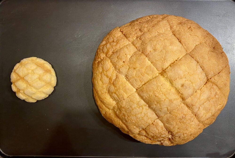 直径32センチのジャンボメロンパン? 「小⻨の奴隷 北九州小嶺店」に新登場