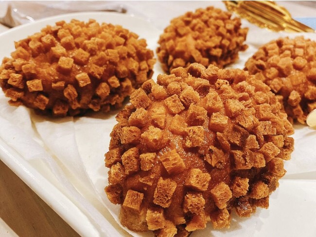 「作るのに2日間かかるジャンボメロンパンは昔ながらのプレーン味!外はしっとりクッキー生地に中はふわふわのパン生地。カットすると小麦の香りが部屋中を覆います。ホイップやジャムをつけて食べて楽しんで♪」とのことです。