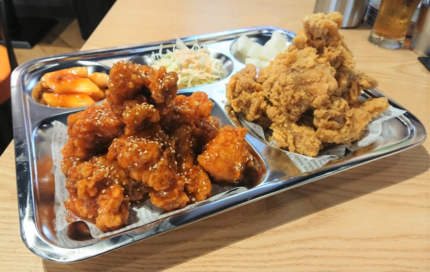 同店の看板メニューであるチキンメニューは、粉チーズたっぷりの「スノーウィングチキン」、甘辛サクサクの「ヤンニョムチキン」、「フライドチキン」「カルビ味チキン」「ホットブリングチキン」の5種類の味を用意。いずれも骨付きと骨なしから選ぶことができます。