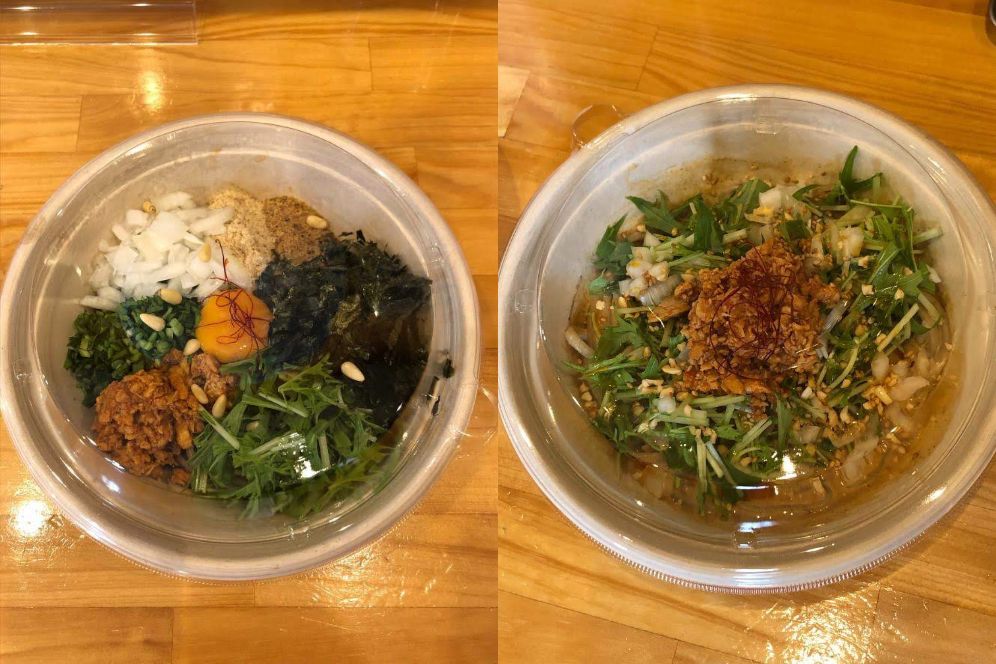 4月上旬から商店街は人もまばらになり、サルタヒコもテイクアウトに踏み切ることを決意。麺特有の悩み「のびる」ことが障壁になったそうですが、試行錯誤の末に「鶏まぜそば」と「汁なし担々麺」のテイクアウトを開始しました。