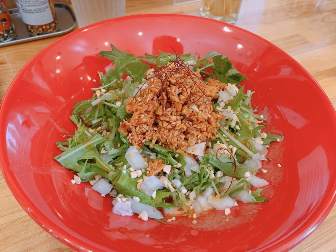 看板メニューの「鶏まぜそば(930円)」は、しっかりした太麺とピリ辛コロコロのチャーシュー入り。台湾まぜそばを独自にアレンジした同メニューは、一度食べたらクセになる一品です。担々麺好きが「美味しい」と口を揃える「汁なし担々麺(930円)」は、ゴマの風味がたまりません。麺を食べ終えたあとは、残ったタレの中に一口大のごはんを入れる「追い飯」で二度楽しめます。