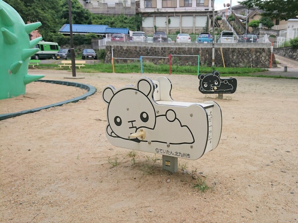 すべり台のインパクトが強すぎて、他の遊具が目に入らない…ということがまったくないのが諏訪一丁目公園のすごいところです。ここの公園は、北九州市の環境マスコットキャラクター「ていたん&ブラックていたん」がデザインされた遊具も複数あり、ていたんたちとも楽しく遊べる公園なのです。