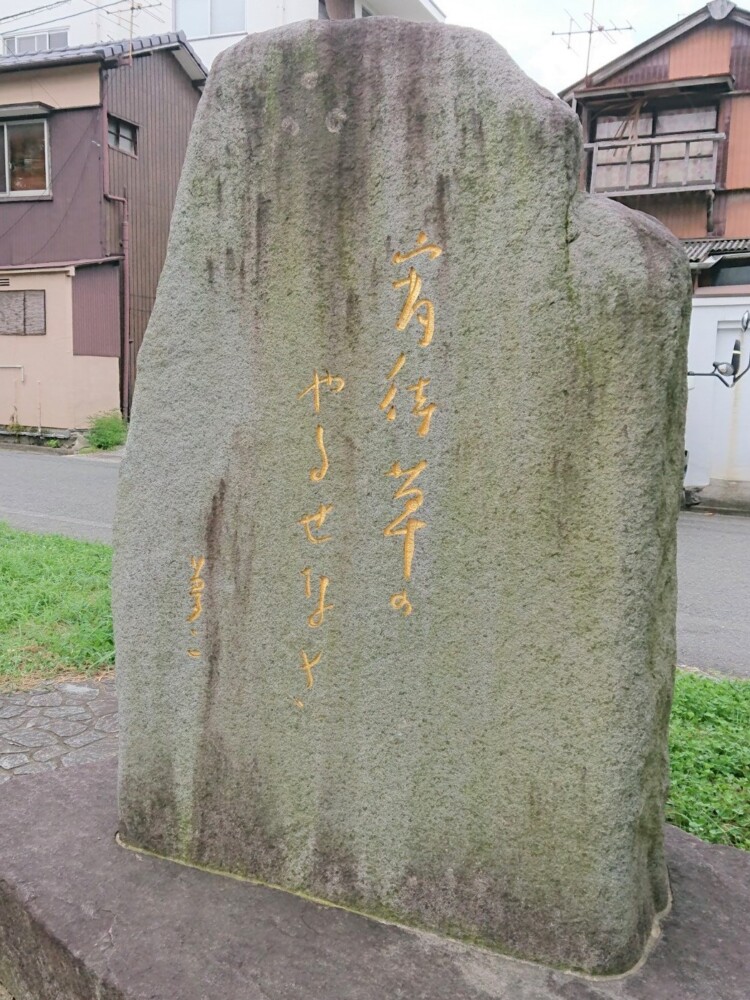 今回訪れた目的である、夢二作詞「宵待草」の一節「宵待草のやるせなさ」と刻まれた文学碑をようやく発見することができました。