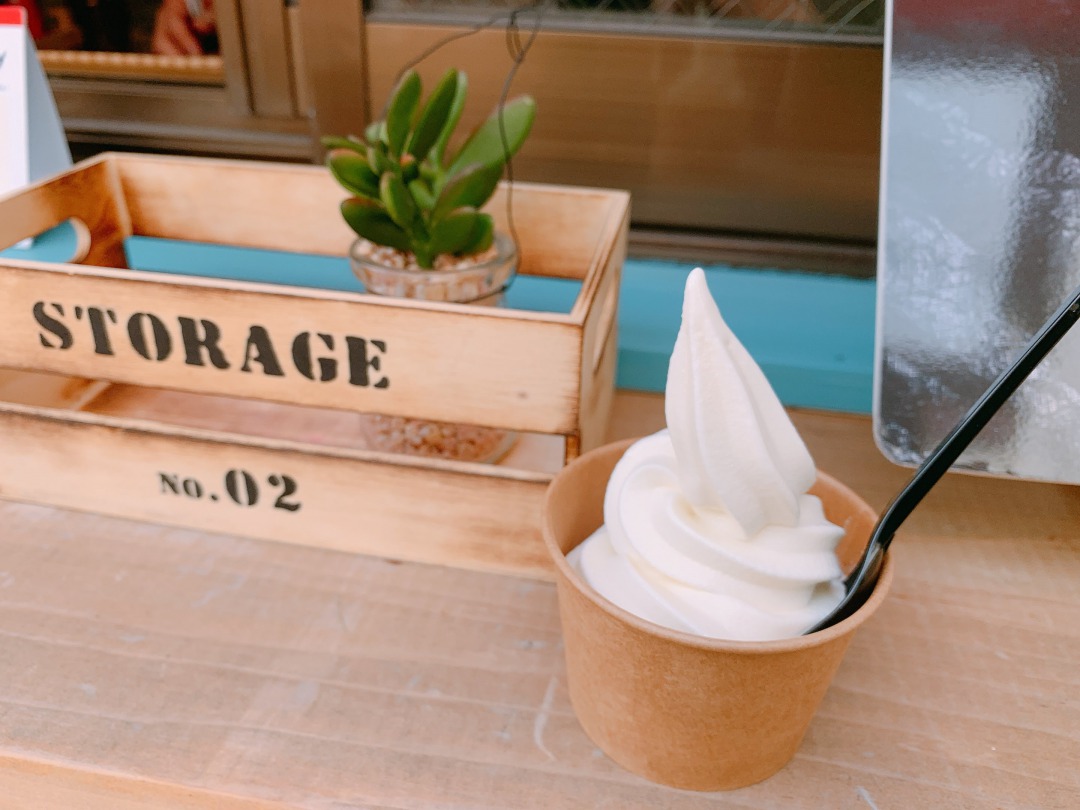 お店をひとりで営んでいるため、注文から受け渡しまで5分から10分ほどお待たせすることがあるそうです。「待っている間も当店を楽しんでもらえたら」と、今月から期間限定で「自家製ソフトクリーム(200円)」を提供しています。