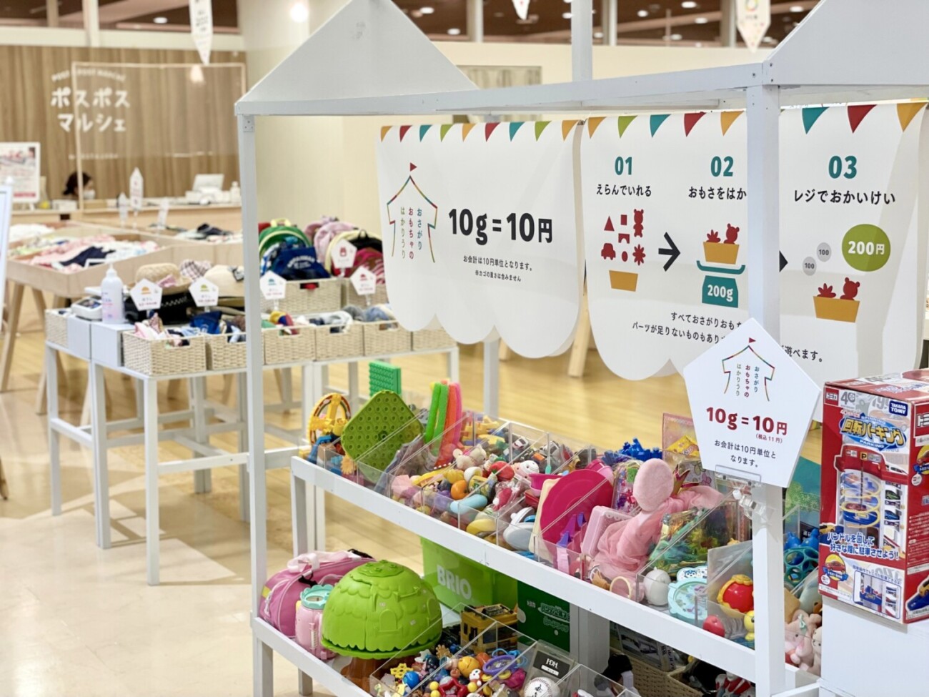 その他にも、こども靴や絵本、こども用品(チャイルドシート・ベビーカー)の販売や、「おもちゃのはかりうり」(10グラム=10円)、服飾雑貨の量り売り(10グラム=10円)もあります。