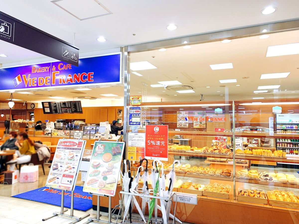 小倉駅の新幹線改札口を出たら正面に見える「小倉エキナカひまわりプラザ」。その入り口に位置するベーカリーカフェ「ヴィ・ド・フランス」。