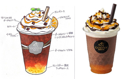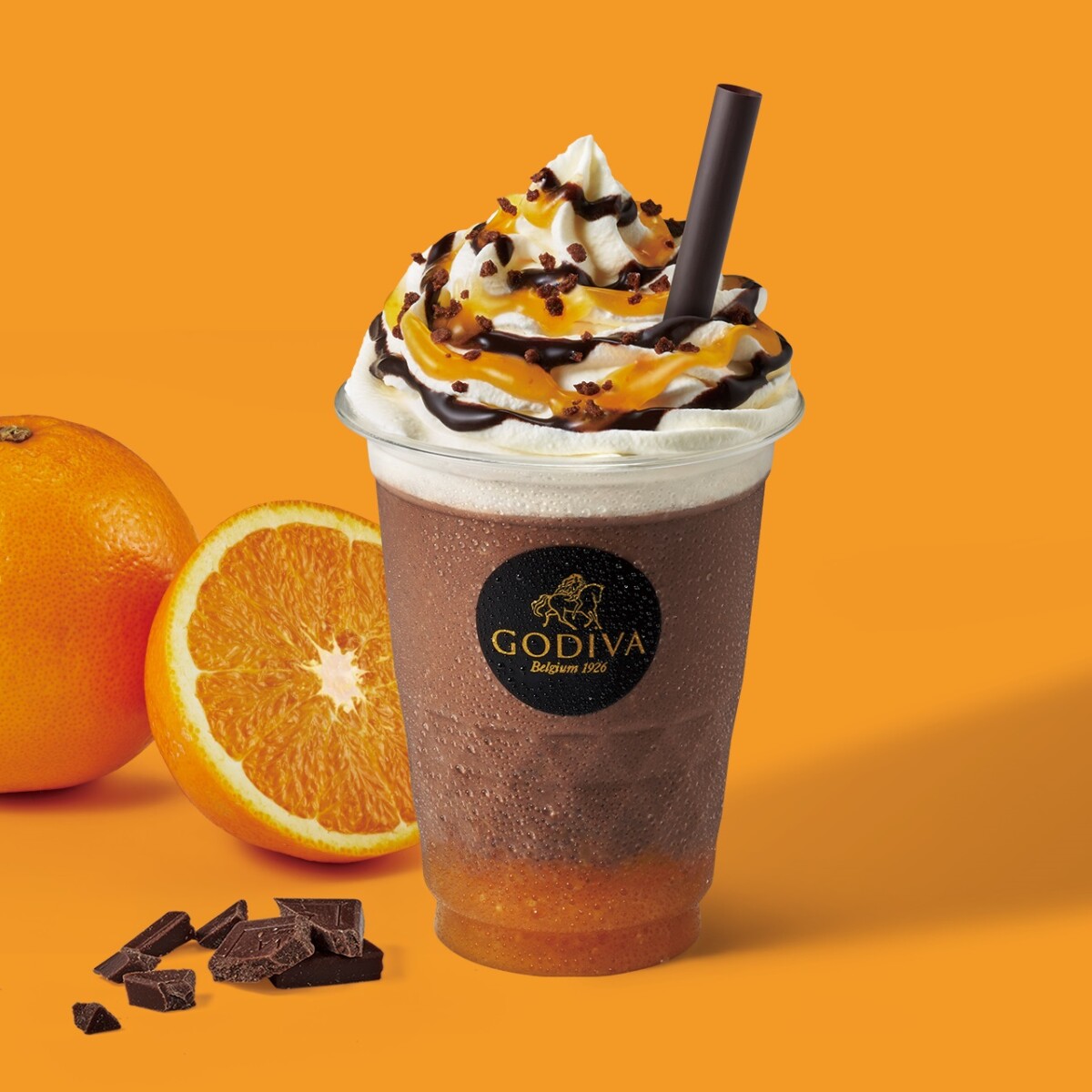 考案されたアイデアをもとに大賞受賞者とゴディバのシェフが共同で開発を行い、商品に仕上げられた同商品は、カカオが上品に香るダークチョコレートに、爽やかなオレンジソースを合わせたフローズンドリンク。アクセントにザクザクとした食感のクランチがトッピングされています。