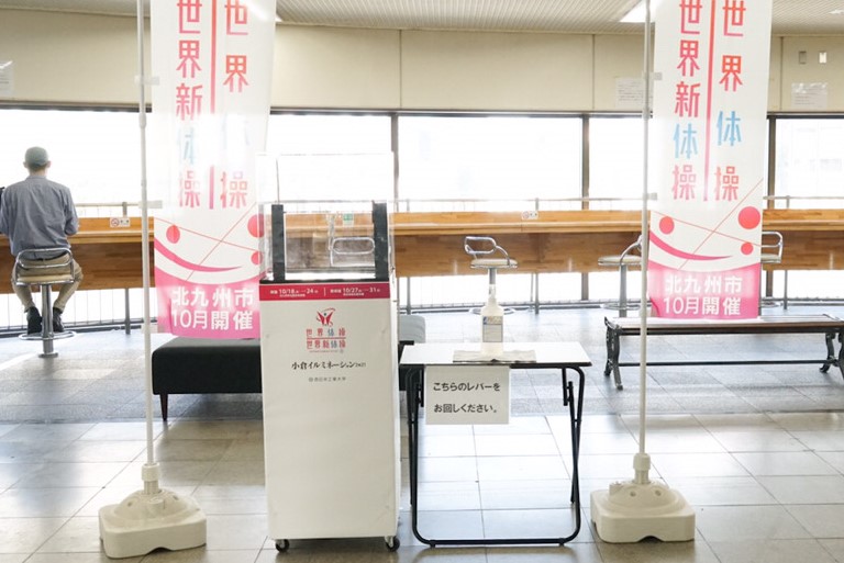 西日本工業大学デザイン学部の学生たちが、まもなく開催される「2021 世界体操・新体操選手権北九州大会」の機運醸成を目的に作品を製作しました。
