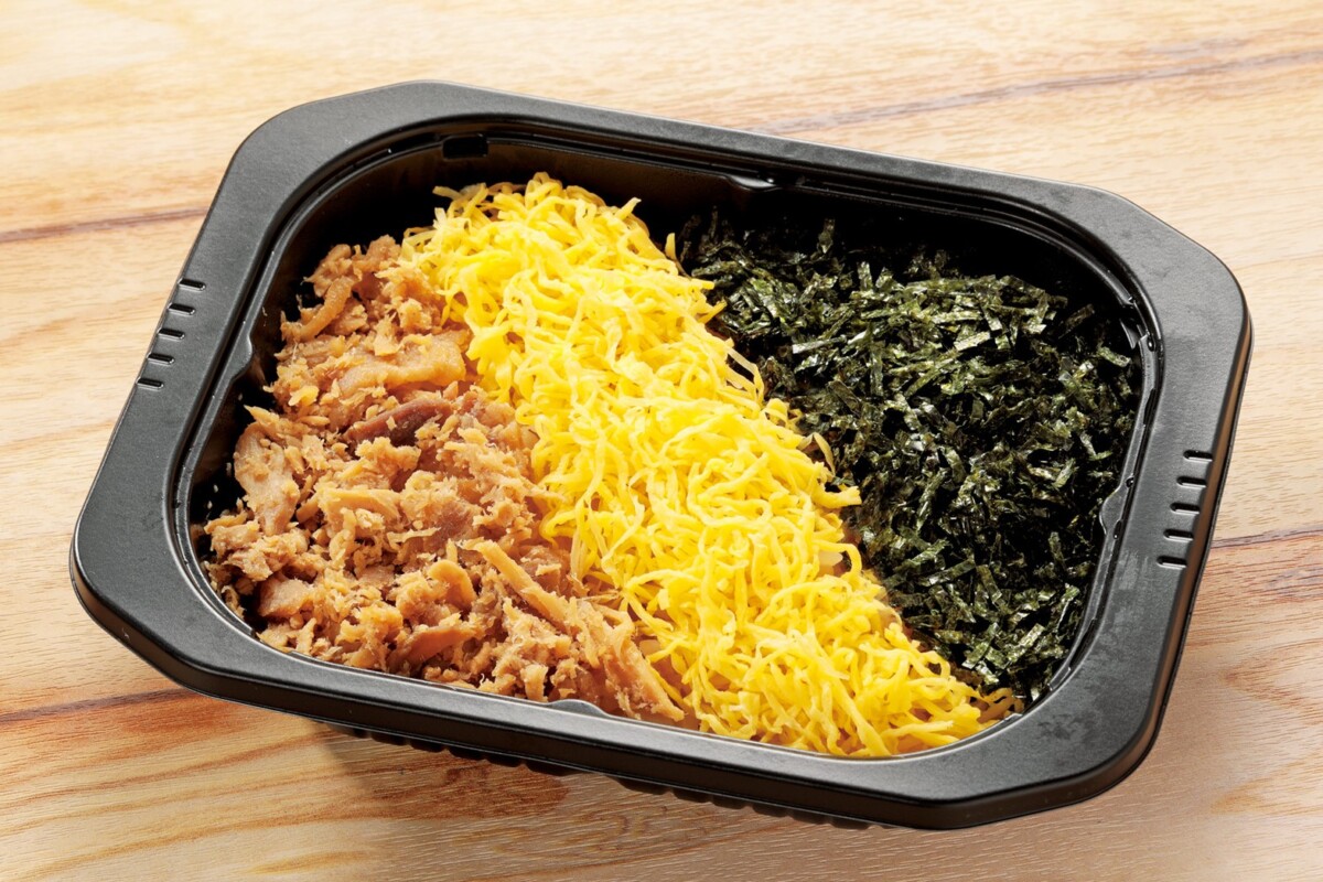 3色のトッピングは別添え 自分の手で完成させる「かしわめし」