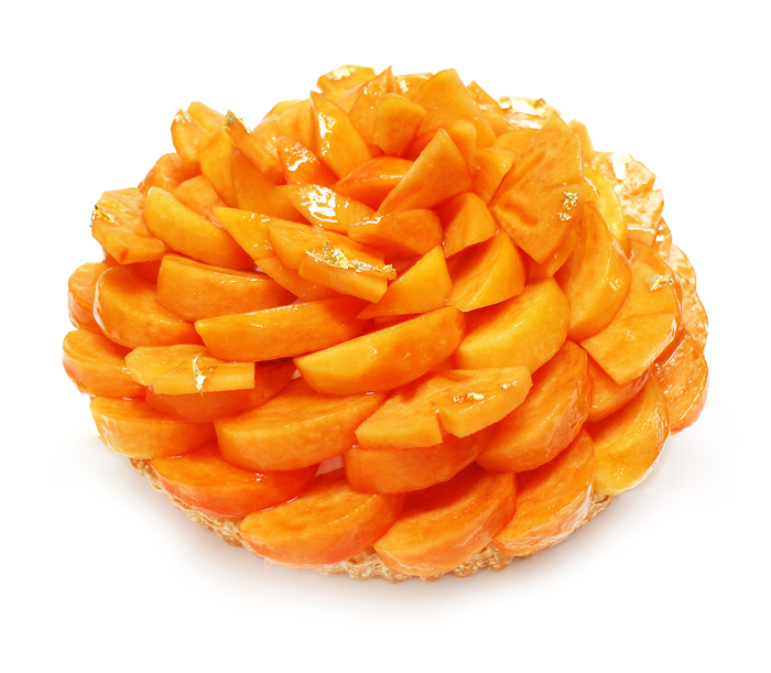 「岐阜県産 柿『天下富舞(てんかふぶ)』のケーキ」には、市場にほとんど出回っていない希少な柿「天下富舞」を使用。イチョウの飾り切りにした柿が、カスタードクリームのベースに美しくふんだんに飾り付けられ、「天下富舞」そのもののおいしさを堪能できます。1ピース1100円。