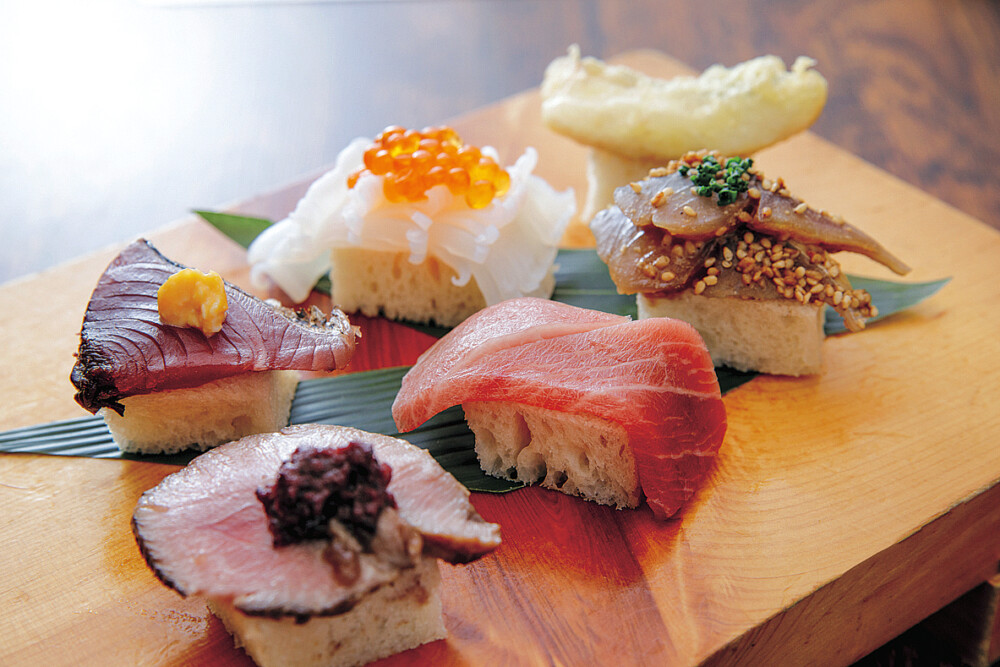 その中には、「韓国創作料理 峠×焼うどん発祥の店 だるま堂」による「特製トッポギ焼うどん」(写真上)や「あそび割烹 賢太朗×パンストック」による「パン寿司(6種)」(写真下)など、今回のイベントでしか食べることができない限定メニューも登場しますよ。