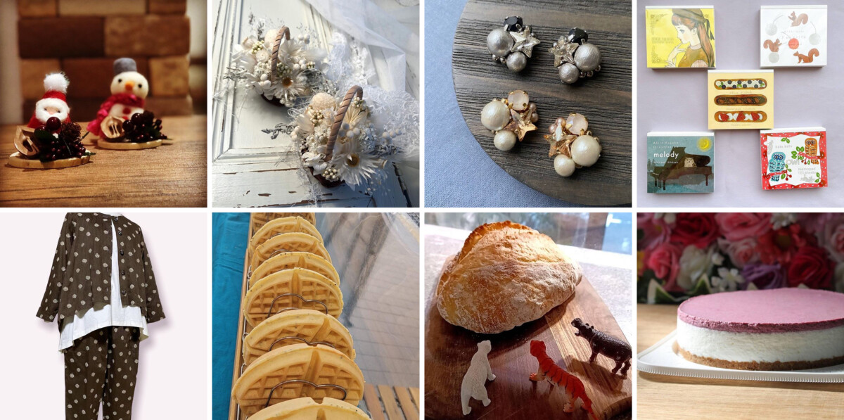 アクセサリー、衣類、文房具・雑貨、駄菓子コミュニティ&手形アートなど、さまざまな商品が並びます。クリスマスやお正月の飾りつけにピッタリなものも多数揃っているので、お気に入りの一品を探すべく、のんびりとお店をのぞきながら買い物を楽しみたいですね。