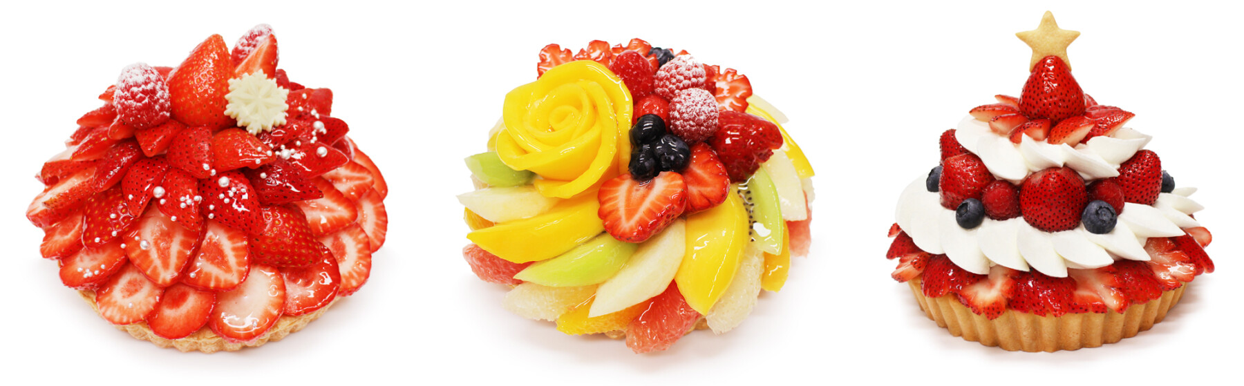 聖なる夜を彩ってくれる「カフェコムサ」のクリスマスケーキは4種類。旬のフルーツをたっぷりと使用し、色鮮やかに飾り付けられる華やかなクリスマスケーキは、その日にお店でカットした新鮮なフルーツを使用し、パティシエが心を込めて当日朝に作っていると言います。