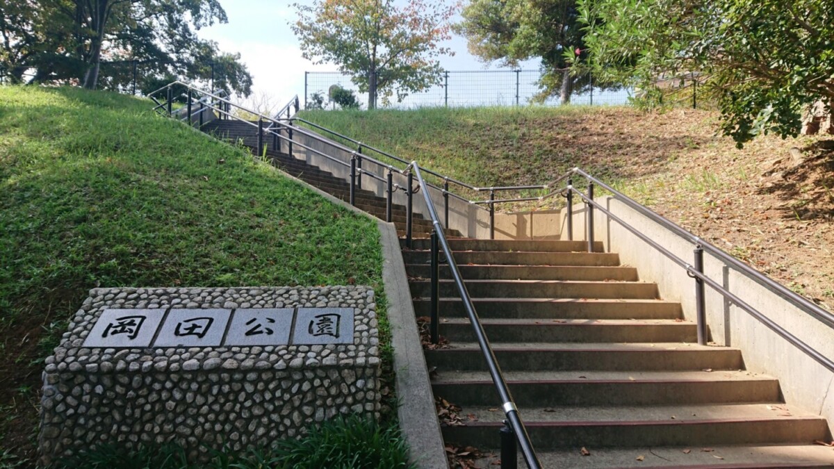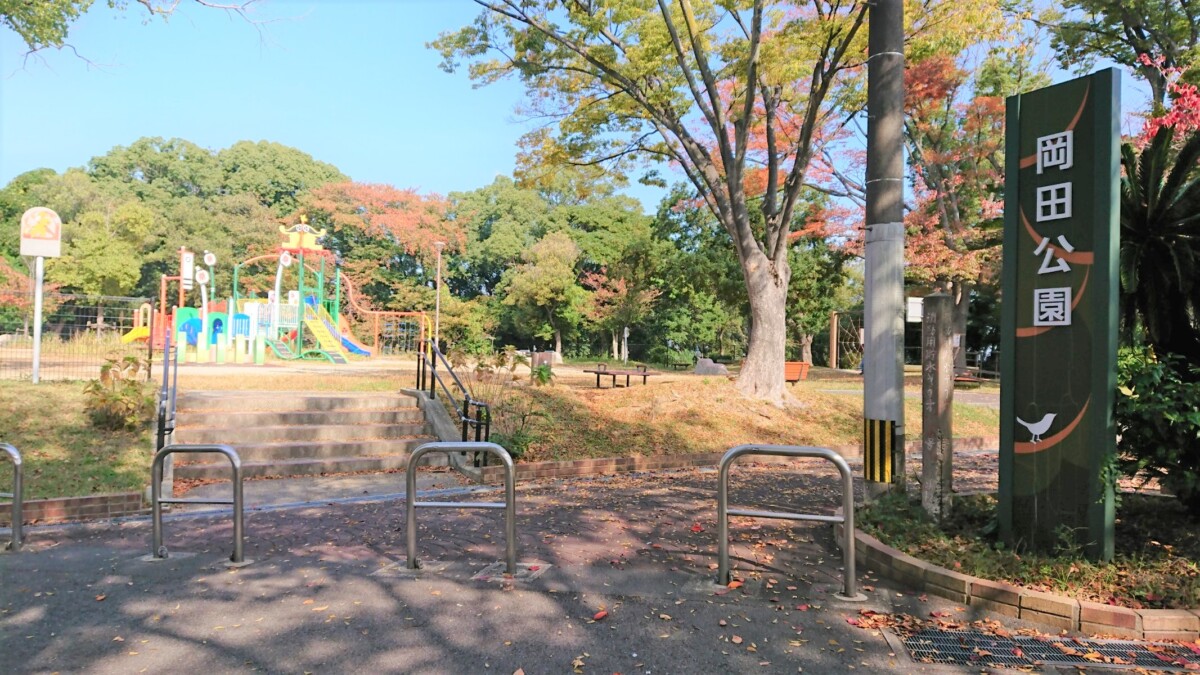 実は岡田公園の別の入り口で公園名が石で囲われているのを見た後に、遊具広場に入った編集部。