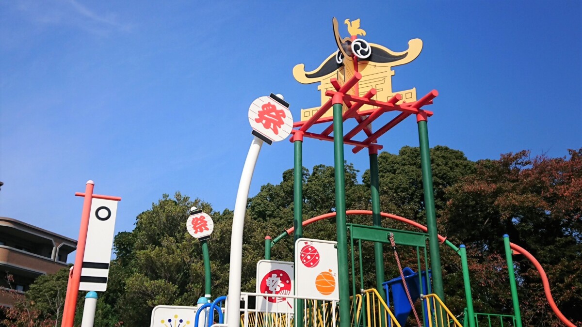 【岡田公園/八幡西区】「黒崎祇園山笠」を思い出させる遊具 神輿が鎮座?